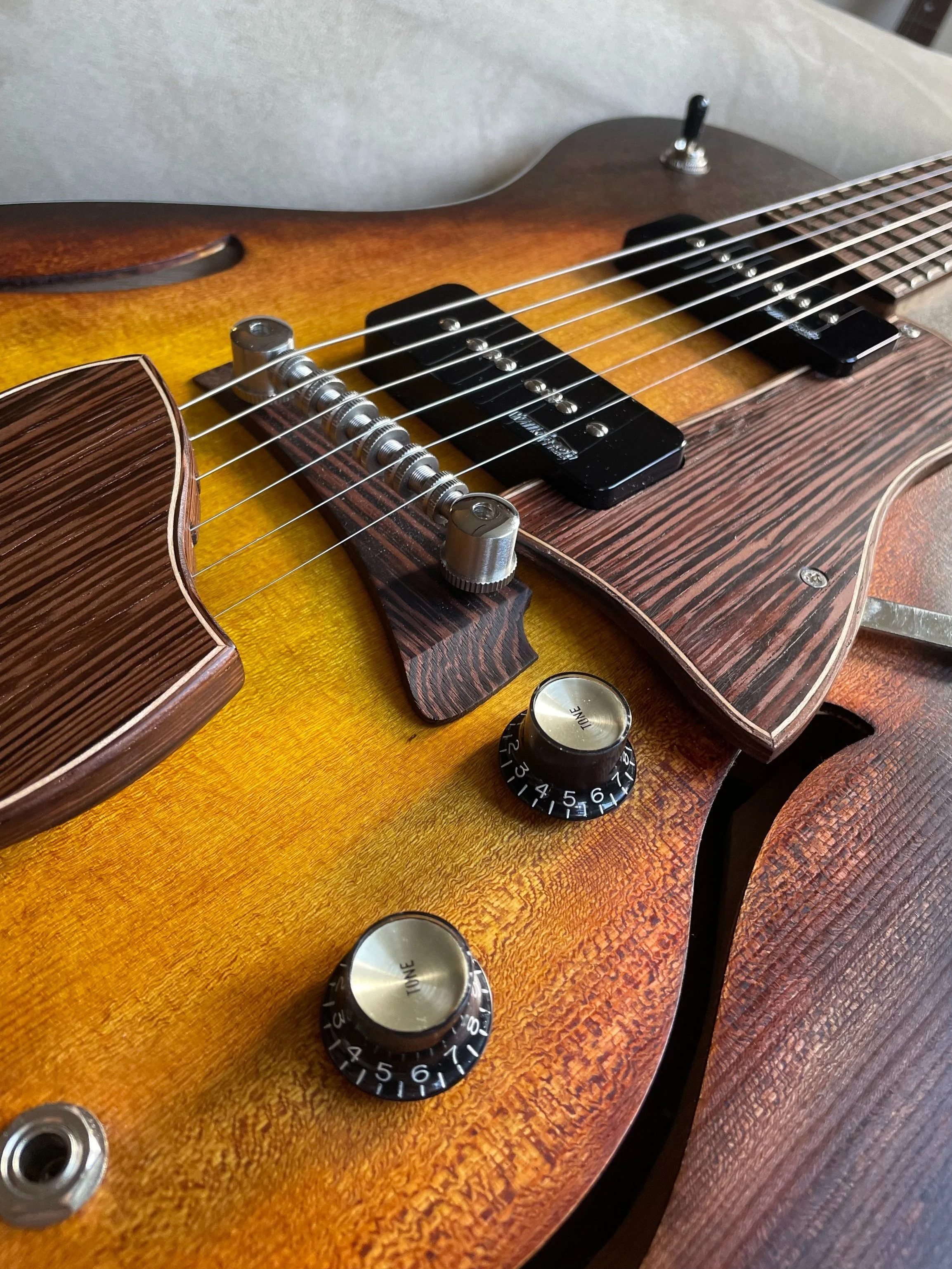 A design I couldn’t resist creating, a design that evolves each time its built. The Ruby is about bringing the hollow-body vibe, in an ergonomic and manageable package.